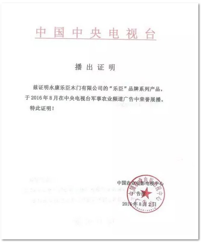 乐臣木门央视CCTV强势热播!