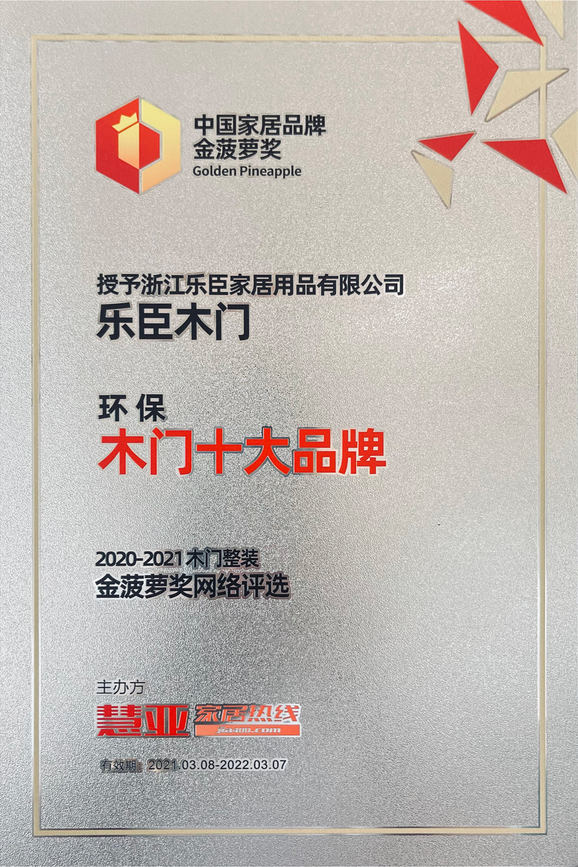 家居NEWS/乐臣获中国家居品牌金菠萝奖“环保木门十大品牌”的殊荣