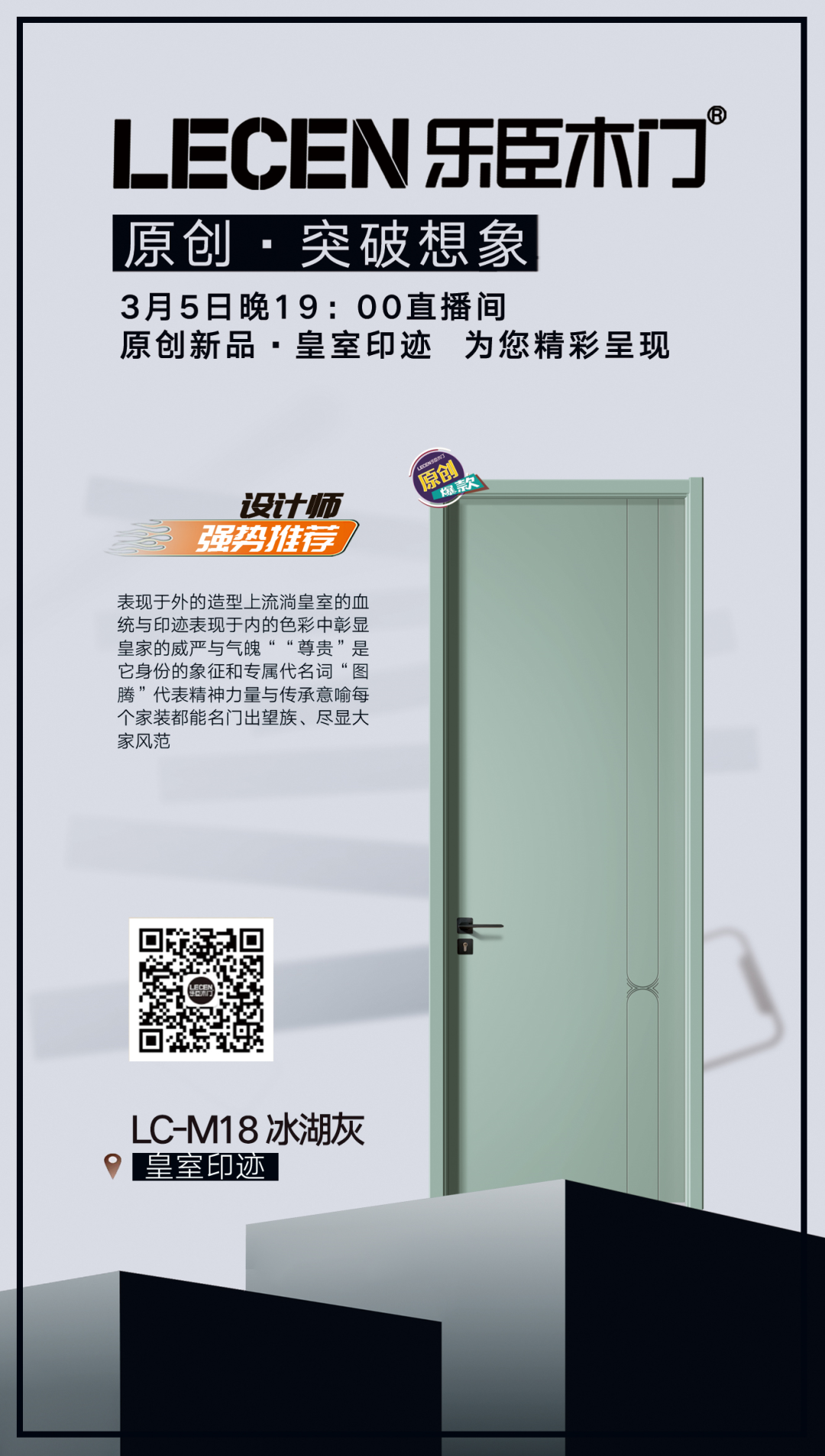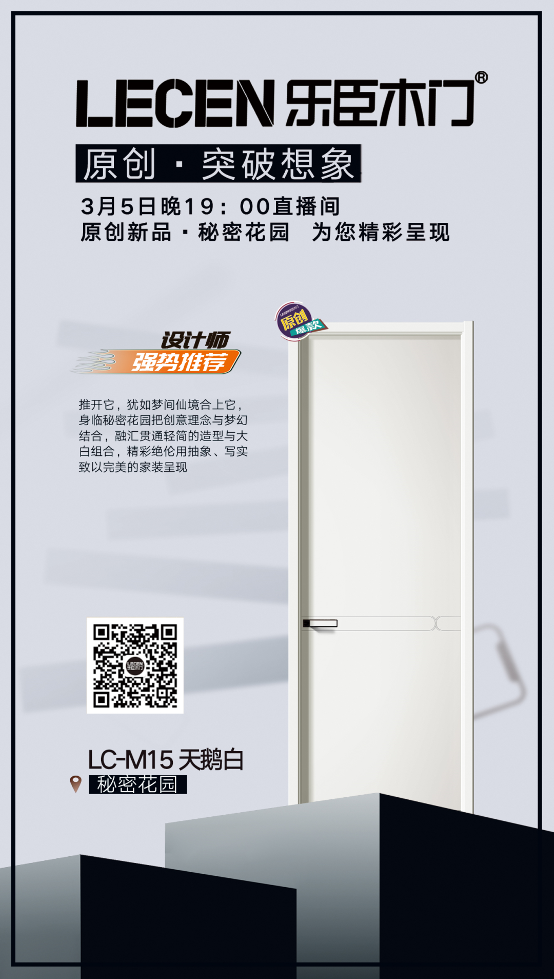 乐臣 木门 LECHENDOORS 3月5日-我“门”如约而至 距离本次乐臣木门新品发布会已悄然接近,越来越多行业人都在持续关注我们此次新品的揭幕。我公司作为一直坚持以原创设计为核心的企业,经过多年的研发设计,不断创新、不断推出更具市场竞争力的新品,才能让乐臣品牌的终端经销商更加有信心的经营,“原创设计节”自从去年在浙江杭州启动以来得到了众多行业及消费者的认可,公司受之鼓舞,让我们带着那份期盼,现诚挚邀请您一起共赏乐臣超级竞品的风采。 超级竞品新品视觉抢先看