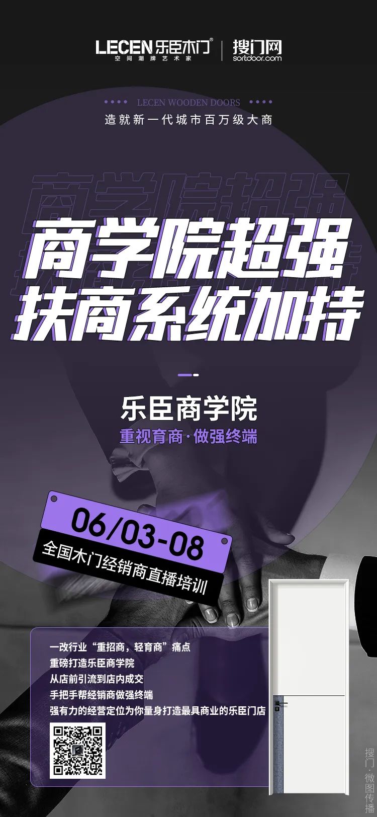商学院超强扶商系统加持 一改行业“重招商,轻育商”痛点 重磅打造乐臣商学院 从店前引流到店内成交 手把手帮经销商做强终端 强有力的经营定位为你量身打造最具商业的乐臣门店