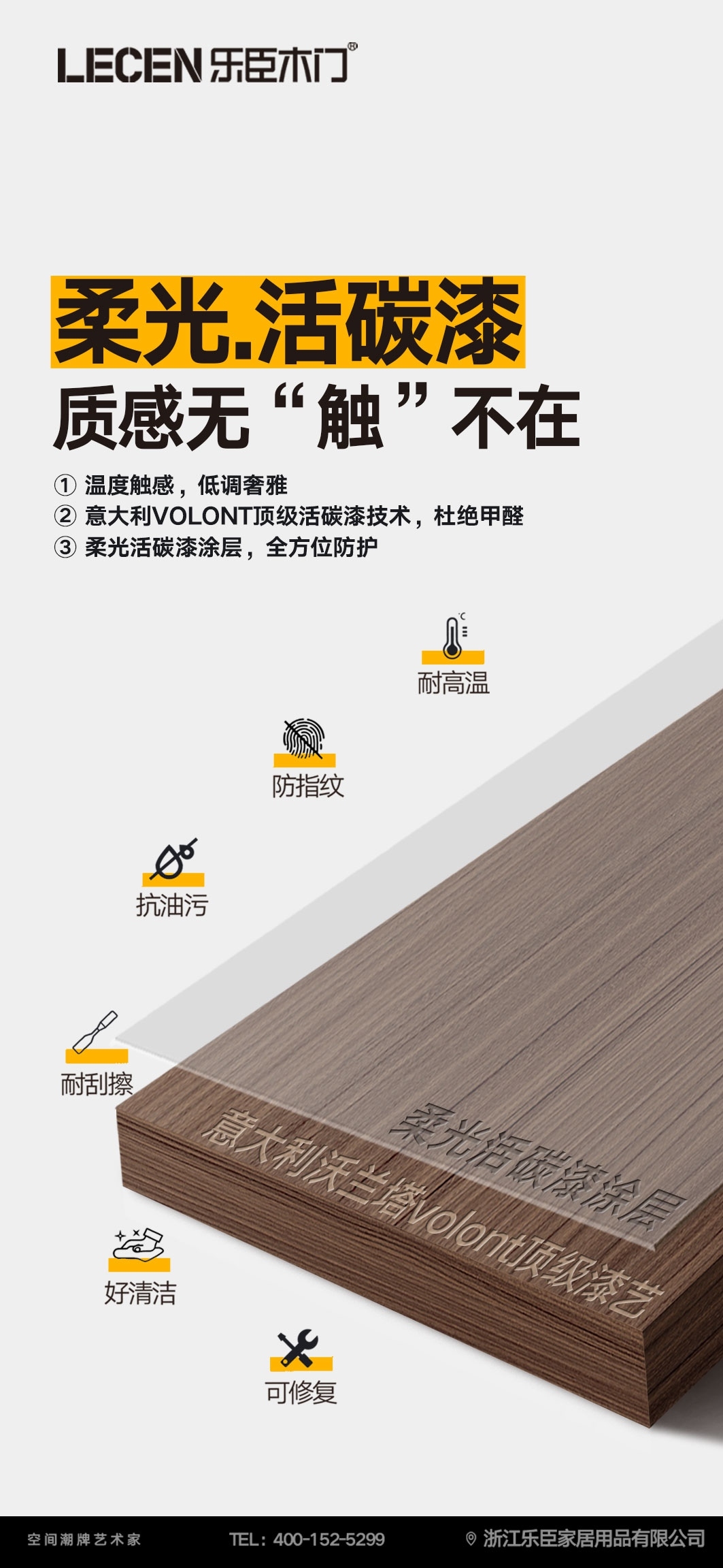 乐臣木门 2026,乐臣木门重新定义一扇门。从功能到艺术,从东方到世界,我“门”不止一面。 全新柔光.活碳漆—采用意大利VOLONT顶级活碳漆技术,给门全方位的防护。消指纹、抗油污、好清洁、耐高温、耐刮擦、可修复。质感无“触”不在!